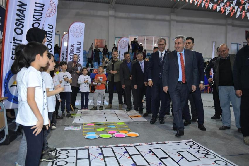 Birbirinden özel projelerin sergilendiği ve oldukça renkli görüntülere sahne olan etkinlikte incelemelerde bulunan Vali Elban, öğrencileri ve öğretmenleri kutlayarak onlarla sohbet etti.